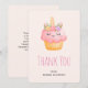 Carte de remerciements avec un dessin d'aquarelle d'un cupcake avec glaçage rose, une corne de licorne et des roses colorés.