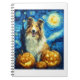 Cute Rough Collie Dog Halloween Jack O Lantern Pumpkin Face Starry Night Van Gogh Style