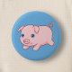 Cute Running Piglet Pig on Blue Button