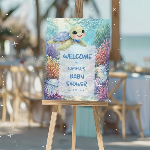 Cute Sea Turtle Boy Baby Shower Welcome Poster