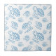 Playful sea turtle pattern ceramic tile with smiling turtles and wave lines in clean blue line art on white. Lighthearted, modern nautical style with a fun coastal vibe. Ideal for kids, ocean lovers, and beach-themed design fans.