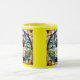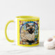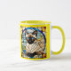 A funny cute cat coffee mug featuring a Siamese cat portrayed in stained glass.