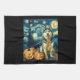 Cute Siberian Husky Dog Halloween Jack O Lantern Pumpkin Face Starry Night Van Gogh Style