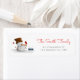 Adorable winter return address label with a snowman dancing. Illustrated and designed by Patricia Alvarez.