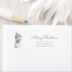 Adorable winter return address label with a snowman holding a little pig. The sentiment reads Merry Christmas. Illustrated and designed by Patricia Alvarez.