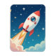 Cute space rocket blasting off magnet