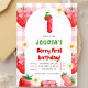 Cute Strawberry Fruit Daisy Berry First Birthday Einladung