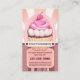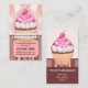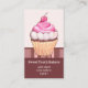 Carte de visite avec l'illustration d'un cupcake rose sucré de style rétro. L'image du étiquette avant se trouve sur un fichier distinct et peut être supprimée si vous n'en avez pas besoin. Beau carte de visite pour un cupcake et une pâtisserie sucrée. Vous pouvez également customiser ce carte de visite pour des événements pour enfants impliquant des cupcakes.