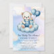 Featuring a sweet teddy bear holding pastel balloons, this soft and elegant design is perfect for a gender-neutral baby shower, welcoming both boys and girls.