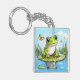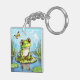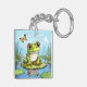 Grenouille adorable assise sur un tapis de lis avec un mignon papillon sur un étang.