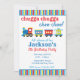 Celebrate your train lover's birthday with this fun and colorful train invitation. The card features a cute train engine with 2 train cars and a caboose.