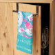 Cute turquoise snowmen script christmas kitchen towel. Personalize text.