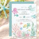 Mignonne sous l'invitation de fête d'anniversaire de la mer avec un poisson gelé, poulpe, requin, tortue de mer & crabe. Idéal pour votre anniversaire d'été à thème sirène océanique.