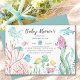 Cute Under the Sea Baby shower Invitation présentant une scène océanique avec corail, méduse, requin, poulpe et tortue de mer
