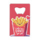 A cute and colorful cartoon illustration of a red French fries carton with a happy kawaii smiling face. The design features a floating red heart and the romantic funny pun quote "I only have FRIES for you". The image has a white sticker border, making it perfect for Valentine's Day greeting cards, fast food lovers, and humorous romantic gifts. Isolated design.
