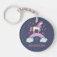 Une mignonne fille personnalisée rose et violet arc-en-ciel unicorne porte - clé. Personnalisez-le pour votre petite fille. Idéal pour retourner à l'école. Conçu pour vous par Blackberry Boulevard.