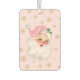 This cute vintage whimsical Christmas car air freshener features a fun pink retro Santa with gold snowflakes on a pink background.