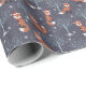 Adorable foxes dressed in red caps and scarves frolic in a snowy forest against a charcoal background.