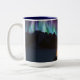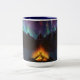 Dans une vallée enneigée, une nuit glacée, au beau milieu de l'hiver, un feu de cheminée s'élève pour miroiter les lumières du nord qui remplissent le ciel au-dessus des montagnes lointaines.