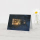 Blick in die Hütte an einem frostigen Winterabend kurz vor Weihnachten. Helle rote Kerzen sind heiß, was ein warmes Glühen über den Schnee aussendet. Der Weihnachtsbaum und der Keller sind mit Krümeln und Goldbällen geschmückt. Eine Kalickatze blickt aus dem Fenster auf eine Kichermücke, die draußen auf der Bügel sitzt, und ein Paar Füchse schielen um die Ecke des kleinen Hauses.