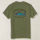 Ein blauer Sockeye Lachs mit Text, der "Cyanotic Lachs Bar & Grill Kenai, Alaska" und "Bekämpfen Sie die Erholung und Entspannung der Fischerei. Das Bild erscheint sowohl auf der Vorderseite (wo eine Tasche wäre) als auch auf der Rückseite. Beide können entfernt werden. Die Lachsfischerei ist sehr beliebt und in Alaska zu beliebt. Stellen Sie sich hundert Angler vor, ungefähr Schulter zu Schulter, die beide Ufer eines Baches belästigen und versuchen, in der Hoffnung, einen großen Lachs zu landen, die Überquerung von Linien mit allen anderen zu vermeiden. Das ist der Kampf gegen das Angeln. Nach einem Tag davon nehmen Sie etwas R&R am mythischen Cyanotischen Lachs in Kenai. Die Angelgeschichten sagten dort... ein bisschen wahr.