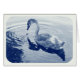 Photo d'un cygne de Signet regardant son propre reflet dans l'eau.Prise à Roath Park Lake, Cardiff, Pays de Galles, Royaume-Uni. La photo utilise un effet Cyanotype ancien et a une bordure ronde de style vintage.
