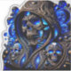 "Step into the digital afterlife with the Cyber Blue Phantom. This mesmerizing design features a central hooded skull illuminated by an electric blue neon glow, surrounded by a legion of ghostly spectral skulls. The intricate silver metallic patterns and glowing blue eyes create a futuristic, high-tech aesthetic perfect for modern rebels. Stand out in the dark with this masterpiece from the Neon Rebels series