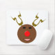 Dieses lustige festliche Mousepad enthält einen lustigen Cartoon eines Rentiers. Er hat schattige schwarze Augen und eine riesige, leuchtend rote Nase. Die Geweihten zeigen nach oben und sehen futuristisch aus und machen diesen Rentier zu einem Cyber-Rentier. Er ist aber immer noch niedlich und freundlich.