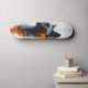 "Cyber Feline" Skateboard Deck Dieses futuristische Skateboard-Deck-Design zeigt das auffallende Profil einer schwarzen Katze mit lebhaften orangen Augen, kontrastiert mit einem weißen Hintergrund. Das Fell der Katze ist aufwändig detailliert, der Blick strahlt Intelligenz und Geheimnis aus. Um die Katze herum ist eine abstrakte Fusion orangefarbener und schwarzer geometrischer Muster, die eine High-Tech-, Cyberpunk-Ästhetik hervorruft. Feine Linien und gitterartige Strukturen, die an Konstruktionszeichnungen erinnern, fügen dem Kunstwerk eine technische und moderne Dimension hinzu. Dieses mithilfe der KI entworfene Werk verbindet digitale Präzision mit künstlerischem Flair und schafft ein faszinierendes Design, das sowohl Technik als auch Natur zelebriert. Dieses Deck ist perfekt für Skateboarder, Technikfreunde und Kunstsammler geeignet und zeichnet sich durch eine kühne Innovation und Stil aus.