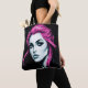 Tote Tasche mit Cyber Punk Portrait eines Mädchens mit hellrosa Haar, perfekt für Fans von urbaner Mode und futuristischen Ästhetik.