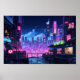 Cyberpunk City Night Café Poster