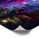 Futuristische sci fi cyberpunk Stadt Tokio Japan mit bunten Neonlicht und Nachthimmel, Blick aus der industriellen Area Bucht voll von Rohren.