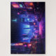 Futuristische sci fi Cyberpunk Stadt Tokio Japan mit farbenfrohen Neonlicht und Nachthimmel, die Dachterrasse Nachtblick. Ideal für Cyberpunk-Fans und Sci-Fi-Liebhaber.