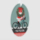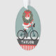 Kreatives Radfahren Weihnachtsgeschenk mit dem Cartoon Santa Bikes. Bearbeiten Sie Text, um ihn einfach anzupassen, indem Sie den Namen Ihres Lieblings-Radfahrers hinzufügen.
