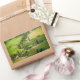Autocollant photo rectangulaire avec un zigzag sinueux, cyprès bordée route à travers les champs verts à Monticchiello, Toscane en Italie.