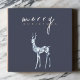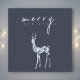 Eine moderne, minimalistisch-neutrale Schieferblau-Weihnachtskarte, die mit handgemalten Rentieren aus Aquarellkristall und moderner Typografie entworfen wurde.
