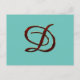 D Monogramm in kupferfarbenem Skript auf Postkarte