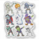 Ein lustiges Design mit neun beliebten Halloween-Figuren - Mumie, Kürbisköpfchen, Zombie, Vampir, Geist, Hexe, hirnbelichteter Zombie, Frankenstein und Skelett - alle machen die trendige "Dab"-Tanze-Pose, Sticker zombie lustig, zwischen Kostümen