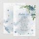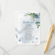fleurs bleues et blanches romantiques avec une jolie carte mariage feuille verte.