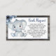 Bleu foncé éléphant Rustique demande billet, fleurs bleu floral arrière - plan en bois aquarelle. Super ajout pour le baby shower garçon. Un éléphant rustique avec un casquette d'hiver de marine. Des fichiers numériques sont également disponibles. Rechercher ici https://www.zazzle.com/collections/119982523391759962?rf=238722231659402553 Want Plus d'articles correspondants à un design spécial s'il vous plaît contactez-moi!