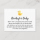 Voici une option simple, mignonne pour vos besoins de demande de carnet de baby showers. Tout le texte a été ajouté aux champs modèles afin que vous puissiez modifier le libellé, si vous le souhaitez - autant ou aussi peu que vous le souhaitez. Sur le devant, j'ai écrit un verset décalé, et un message amical et explicatif pour le dos. Utilisez mon original, ou remplacez-les par l'une des nombreuses autres options disponibles en ligne à votre gré. Tous les types sont modifiables en noir sur blanc modifiable; changez la couleur - ou les polices - si vous préférez. Le seul embellissement est un petit graphique en canard en caoutchouc jaune qui apparaît de part et d'autre. // Conçu par Melody Watson pour Paper Muserie.