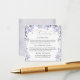 Cette élégante carte d'enceinte de mariage est conçue avec de délicates fleurs d'aquarelle et des feuilles botaniques doux dans les tons violet et gris, créant un look intemporel et d'inspiration vintage. Cette carte d'enceinte, qui correspond parfaitement à la suite de faire-part de mariage, fournit des détails importants pour vos invités de manière organisée et élégante. L'aménagement comprend des sections pour la réception, l'hébergement et plus de détails comme un site Web mariage, pour s'assurer que toutes les informations essentielles sont clairement présentées. Avec son aquarelle à l'ancienne, sa bordure fleurie romantique et sa typographie raffinée, cette carte de boîtier mariage ajoute à la fois fonction et beauté à votre collection de papeterie.
