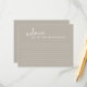 La Taupe Minimalist Script Fête des mariées Advice Card est un complément parfait à toute douche nuptiale moderne. Avec son design simple et élégant et ses lettres de script modernes, cette carte de conseil est à la fois élégante et fonctionnelle. Vos invités adoreront partager leurs souhaits et conseils pour les futurs mariés sur cette belle carte couleur Taupe.