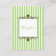 Cette carte à rayures vert pomme et blanc présente des accents de défilement marron et correspond au faire-part de mariage ci-dessous. Vous pouvez également customiser qu'il s'agit d'une carte ou d'une carte d'itinéraire, d'une carte d'information du mariage ou d'une carte de registre de cadeaux en modifiant le texte en conséquence. S'il y a d'autres articles correspondants dont vous avez besoin, veuillez envoyer votre demande par courriel à niteowlstudio@gmail.com.