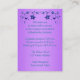 Cette jolie carte d'enceinte de réception de mariage violet et turquoise bleu vert à fleurs possède un ruban imprimé violet et une paire de bijoux en diamant IMPRIMÉS et de parties scintillant FAUX y ont joint le coeur. Vous pouvez l'utiliser comme carte d'hébergement ou d'itinéraire, un registre de cadeaux ou une carte de voeux, un site Web mariage ou une carte d'information, ou comme étiquette-cadeau à joindre à vos faveurs de mariage. Si vous redimensionnez la carte, ou si vous modifiez les polices, ou la taille de la police, une partie du texte peut être coupée. Tout va s'imprimer comme vous le voyez sur votre écran. Je ne verrai pas votre carte, et Zazzle ne corrigera rien (fautes de frappe, mauvais alignement, etc.). Le texte est personnalisable. Si vous avez besoin d'aide avec cette carte, envoyez-moi un courriel AVANT de passer votre commande. Si vous avez besoin d'autres articles correspondants, veuillez envoyer votre demande par courriel à niteowlstudio@gmail.com.