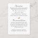 Design avant présente une belle image de Notre Dame de Fatima comme un ovale au centre. Image de roses délicates roses et blanches formant un cadre. L'image des anneaux de mariage dorés unis est affichée ci-dessous et à gauche d'ovale. En-tête personnalisable affiché dans une police Nuptial élégante. Les angles supérieurs gauche et inférieur droit sont les images de roses et de verdure. Reverse affiche votre texte dans une police de couleur argent. La rubrique Réception et la rubrique Hébergement sont toutes deux présentées dans la même police Nuptiale. Les informations ci-dessous sont affichées dans une impression claire et facile à lire. Conçu pour coordonner avec la "Suite Mariage catholique Vierge Marie".