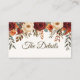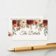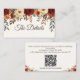 Complétez votre papeterie mariage avec cette élégante carte de boîtier Mariage de automne rustique. Conçue avec des roses bordeaux aquarelle, des dahlias oranges brûlées, de la verdure d'eucalyptus et des feuilles d'automne dorées, cette carte est parfaite pour les mariages d'automne. Entièrement personnalisable, vous pouvez ajouter votre code QR, des informations supplémentaires pour les invités (comme le site Web du mariage, le lien RSVP, les directions ou le registre des cadeaux), ou tout texte personnalisé. Son design rustique et romantique complète les invitations, les cartes RSVP et autres papeteries mariages de la même collection. Cette carte boîtier est à la fois pratique et élégante, ce qui en fait une touche de finition parfaite pour votre suite mariage de automne.