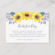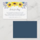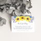 Faites glisser ces petites cartes dans vos invitations à la douche pour bébé pour demander que les invités apportent un livre pour le bébé au lieu d'une carte. Le design Country chic est composé d'un ensemble de tournesols jaunes aquarelles, de minuscules bourgeons bleu marine et violet et de feuillage vert qui correspondent à notre collection d'invitations Flowerfields. Un poème sucré explique le concept "livres pour bébé" et demande, et peut être modifié pour répondre à vos besoins.