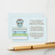 Une jolie petite chouette bleue perche au-dessus d'une pile de livres bleus et verts sur un bébé arrière - plan bleu doux dans cette demande de livre amusant souhaitant bonne carte. Un poème charmant demande aux clients d'apporter un livre pour le futur bébé pour commencer la nouvelle maman avec une bibliothèque de livres pour enfants bien-aimés. Il suffit d'insérer cette carte sucrée dans l'enveloppe du baby shower, et vos invités sauront ce qui est nécessaire pour commencer bébé sur le chemin de la lecture.