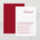 La Carte de Détail Mariage Rouge de Calligraphie moderne est un ajout chic à votre suite de papeterie mariage. Avec une calligraphie élégante et fluide associée à un design rouge vif, cette carte de détail offre à vos invités des informations essentielles dans un format élégant. Parfait pour partager des détails tels que l'itinéraire, l'hébergement à l'hôtel, la chronologie mariage et le code vestimentaire, cette carte vous assure que vos invités sont bien préparés pour votre journée spéciale. Son design sophistiqué est magnifiquement cravate avec un mariage sur le thème rouge, ajoutant une touche de classe et de clarté. Imprimées sur des cartons de haute qualité, nos cartes de détail offrent un look et une sensation luxueux qui impressionnent vos invités. Que vous planifiez un rassemblement intime ou une grande fête, cette carte vous donnera une impression durable et vous assurera que vos invités ont toutes les informations dont ils ont besoin pour profiter pleinement de votre jour de mariage. Faites une déclaration avec votre papier à lettres mariage et améliorez la sophistication de vos détails mariages avec notre carte de détail minimaliste de script moderne Mariage. C'est le choix idéal pour les couples qui apprécient le design épuré et contemporain et veulent que leur papeterie reflète leur goût raffiné
